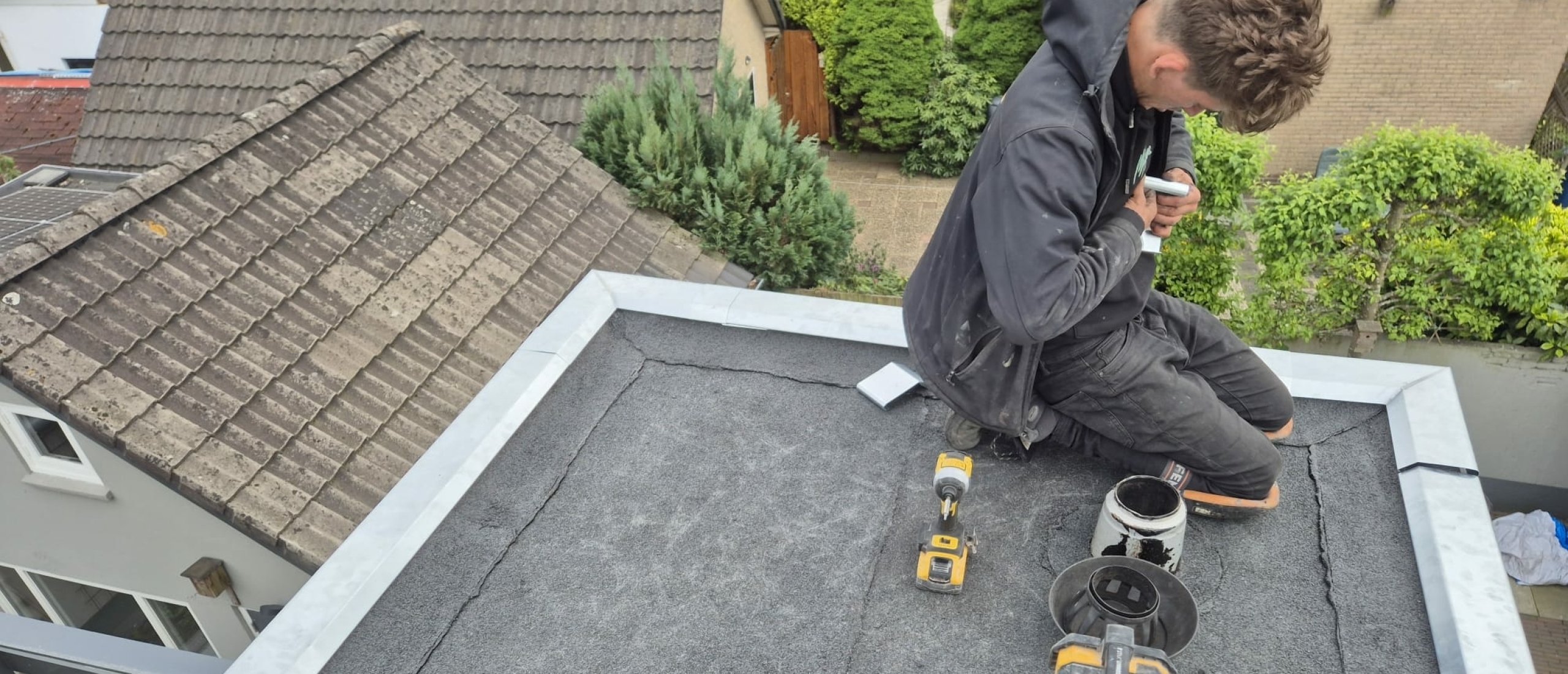 EPDM-strook, bitumen of ander materiaal wordt expert aangebracht met garantie.